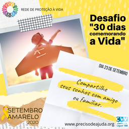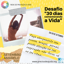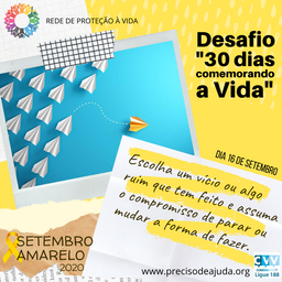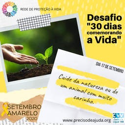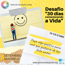 Quebrar o tabu e abordar o tema como problema de saúde pública é a proposta da campanha Setembro Amarelo, mês dedicado a ações e eventos gratuitos voltados à valorização da vida e ao combate do suicídio. O objetivo é incentivar a reflexão e o conhecimento sobre o assunto, divulgando os canais de apoio a quem necessita de ajuda. A campanha foi criada em 2015, pelo brasileiro e um dos idealizadores da Rede, Prof. Dr. José Manoel Bertolotte, membro da Organização Mundial da Saúde e coordenador das atividades da Rede de Proteção da Vida, em parceria com o Centro de Valorização da Vida - CVV.
